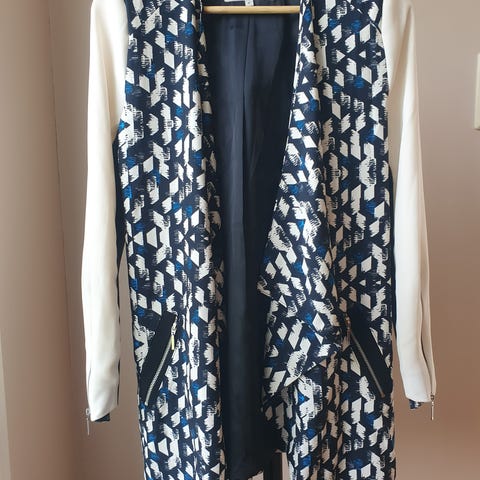 En av knappene er litt løs, men funker, og kan enkelt sys på plass. Usikker på størrelse, men er 71cm