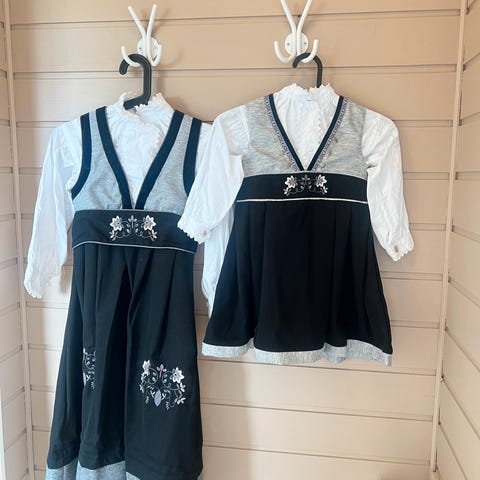 Extended size (kan forlenges ved og kutte opp sømmer nederst på stakken (vi har ikke gjort det)).