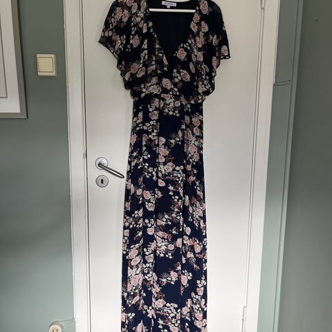 Maxikjole fra Floyd i chiffon, aldri vært brukt. Den er i str 8, som tilsvarer S, men den er elastisk i ryggen og vil nok passe de som bruker M(38) også. Må hentes på Kleppestø, evt betaler kjøper porto.