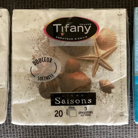 3 ekstra store pakker med servietter, størrelsen er 40 cm x 40 cm, 3-lag. Det er 2 forskjellige, 2 er makne, de er lys blå, og 1 pakke med mørk blå. De er fra TIFANY. Serviettene ligger uåpnet med plasten rundt. Se bildene med flere opplysninger. De selges kr. 25,- pr. pakke, eller alle fire til kr. 85.- (-15%). De kan sendes, eller hentes her i Sandefjord, eller avtale henting i Tønsberg på Tolvsrød.