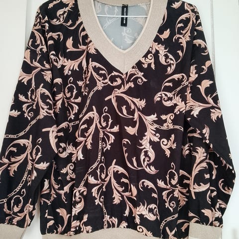 Flott bluse i str XL, selges for kr 199,- Flotte detaljer på armene. Brukt en gang, ingen bruksmerker.