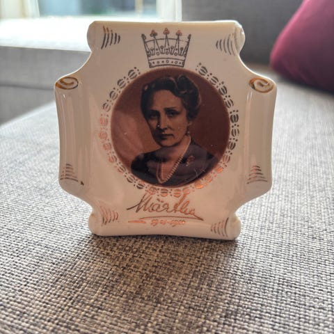 Minneplatte Mærtha. Er et knast i kanten på platten som er limt se bilde. Kjøper betaler eventuell frakt.