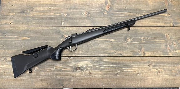 Rå rifle med karbonstokk og karbonpipe med ekstrem presisjon. Låskassen er overflatebehandlet med cerakote, og har løst magasin.