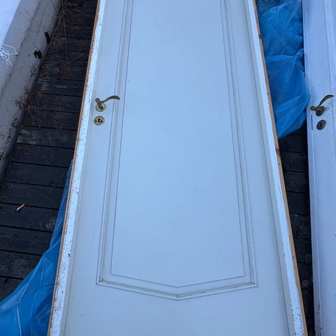 Fin gammel hvit tredør selges. Stilig å bruke som feks sengegavl og bord.
