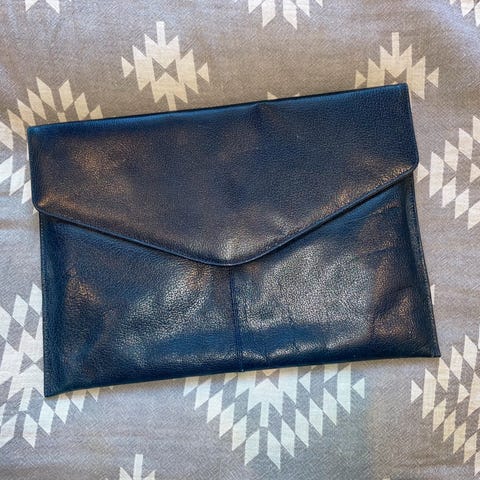 Fin skulderveske/clutch med avtagbar skulderlenke, reim til Ă„ ha rundt hĂ„ndleddet, et glidlĂ„slukket rom pĂ„ utsiden og tre smĂ„rom (ett med glidlĂ„s) i tillegg til hovedrommet inni. Perfekt praktisk stĂžrrelse; 31Ă22cm. Kr149,- evt pluss porto.