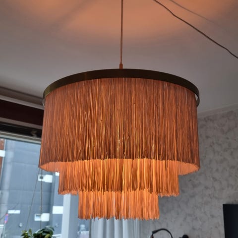 Nydelig frostet tak eller vegglampe som aldri har vært i bruk. Alt av tilbehør følger også med, selvfølgelig. I tillegg får du to ubrukte lyspærer på kjøpet 😊