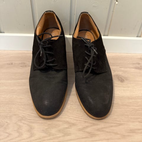 Pensko fra B&CO i str 40. Strikk øverst Kjøpt ny 22.04.23 og kun brukt en kveld, men har likevel en skade på høyre hæl, og merker på sålen etter å ha gått ute i snø.