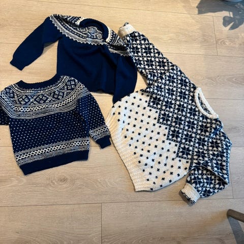 To pent brukte gensere, tatt på bare to ganger før guttene ble for større