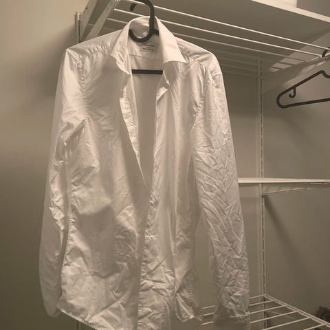 Selger en pent brukt hvit slimfit skjorte brukt av en ungdom. Kjøpt på Dressmann og nypris er 599.