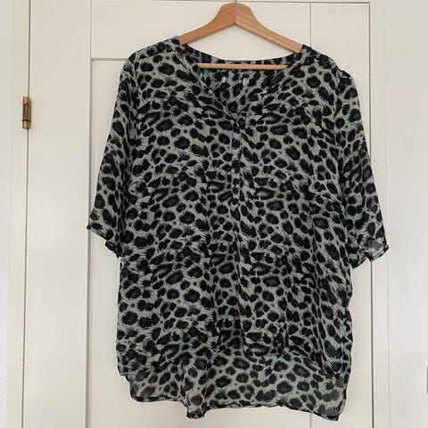 Svart t-skjorte topp m hvite prikker i superlett og myk modal fra Cellebes. Str. 46/48 og vid modell. Kun vasket to ganger og brukt en gang (ble for stor), fremstår som ny.