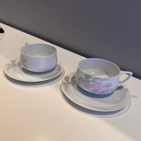 Kopper og krus i mange forskjellige mønster roser