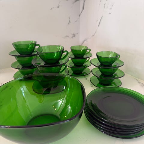 Grønne glasstallerkener, franske