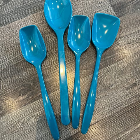 Ny kaffeskje 50,- nye blå teskjeer 20,-pr stk