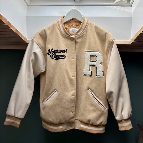 Myk College-jakke i marineblå, hvit og lysrosa med glitter-detaljer og trykk-knapper i str. 152 cm (11-12 år) fra Zara girls.