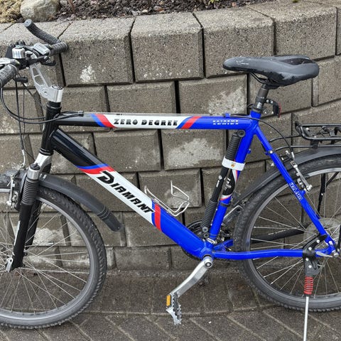 16 tommer ramme. Noen bruksmerker. Bremsehåndtaket på begge sider er ødelagt.. Ellers i god stand. Passer til person opp til 160 cm høy.