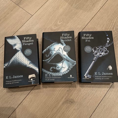 3 bøker av Fifty Shades på norsk.