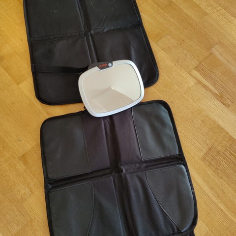 Festes på ryggen av forsetene for at barn har noe å oppbevare ting og tang i. Beskytter også forsetene mot skitne sko. Har 2 stk, selges samlet for 200 kr.