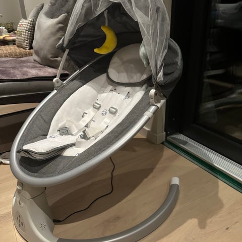 Lite brukt vippestol til baby. Ingen feil ingen flekker. Kjøpte den men falt ikke i smak hos baby. Den vipper frem og tilbake, har vibrering i stolen og spiller av noen melodier. Det henger to bamser på den og er utstyrt med 5 punkt sele. Lader ledning følger med. Ble kjøpt nytt følger også med kvittering.