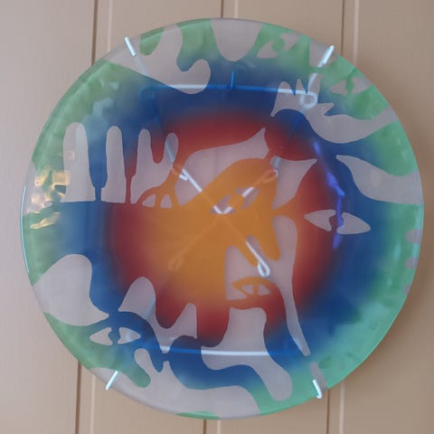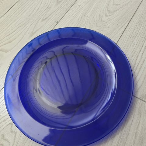 Blått håndlaget serveringsfat fra Magnor (sender ikke)