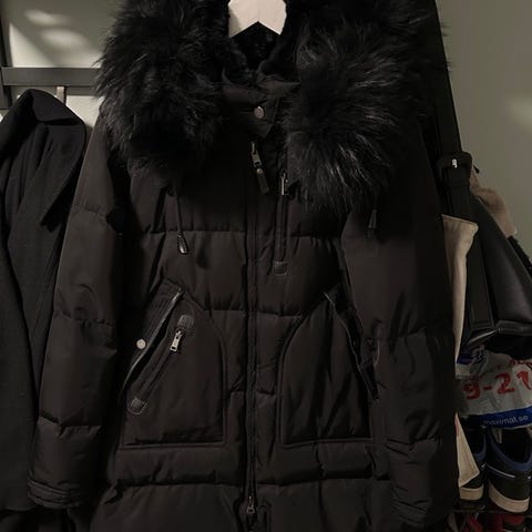 90%dun, 10% fjær, avtagbar kanin pels på hetta.