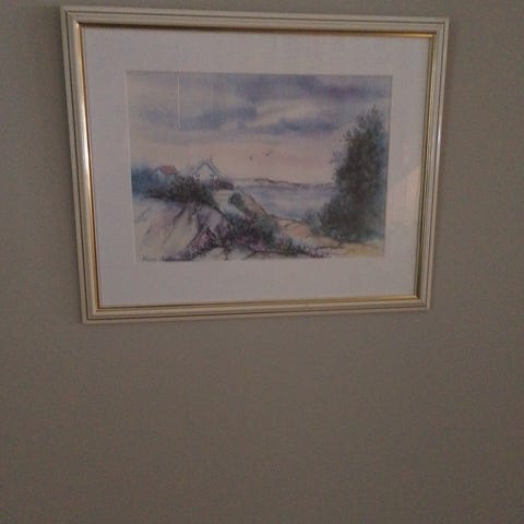 Trykk med bilde av blomster og skog av Karin Andersen fra 1989 selges.