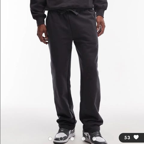 Ny blå bukse med lommer og strikk i livet, 50 .-