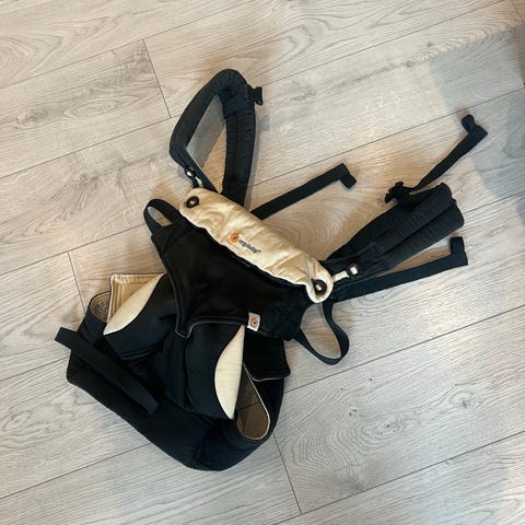 Meget pent brukt bæresele fra stokke i grå/lys grønn. Alle deler for å bære både på bryst og rygg.