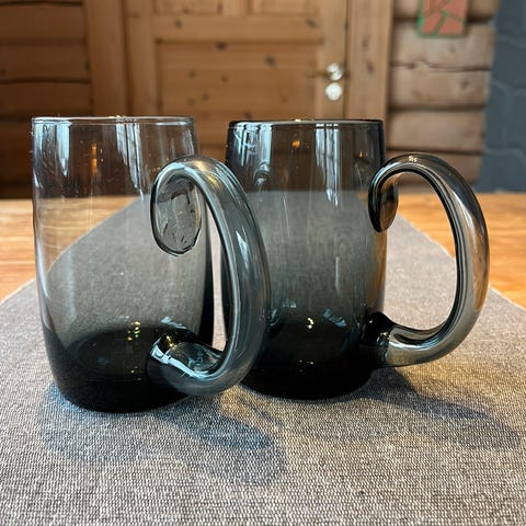 Rommer ca 350ml. Ca 12 cm høy. Håndlaget og dermed er hvert glass unikt:) Nydelig grønnfarge, flaskegrønn.