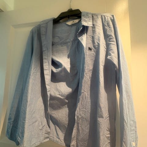 Selger en bomullsskjorte som er helt ny, ubrukt, med lappen fortsatt på.