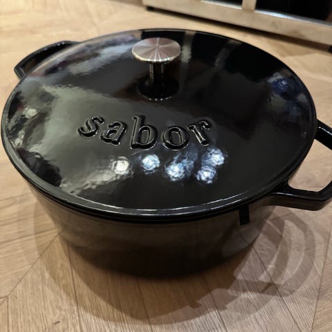 Ny Lava støpejernkasserolle. Rød emalje uten skader. Oval.
