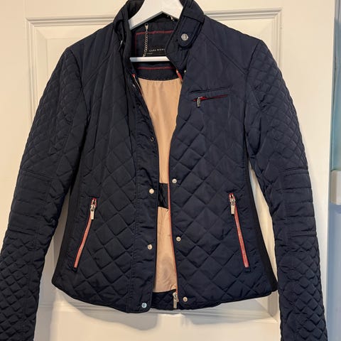 Superfin jakke fra Zara med fine detaljer. Har et par mørkere striper på armen (se bilde). Dette er ikke forsøkt fjernet, selges derfor rimelig.