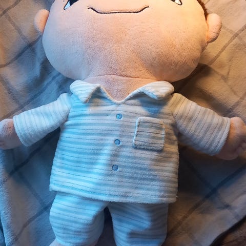 Bamsen er ren og fin, men mangler en hånd...den er borte vekk.