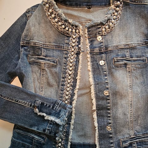 Dongeri Jakke med perler fra Twin Set str M