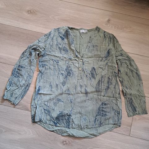 Kule detaljer rundt hals, knapp på ermet til å brette opp. Tynt stoff ♡