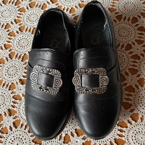 Lærsko størrelse (4) 36 fra husflid med sølv ornament