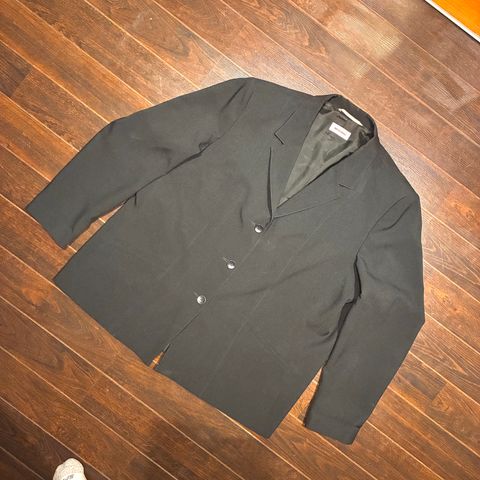 Farge: marineblå. Splitt i sidene. Stretch. To brystlommer. Knapper, skulderputer.
