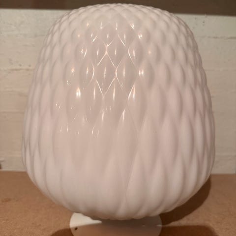 Lampe med hvit plastskjerm. Høyde er ca. 140cm slik lampen står nå.