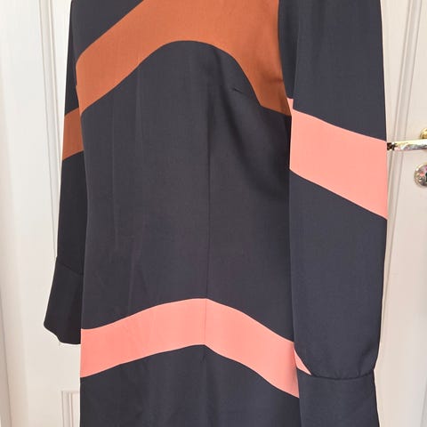 Striper i matt og sateng stoff - begge to i den samme rosa/bringebær fargen.
