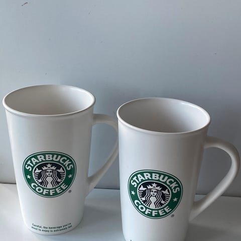 Starbucks krus fra 2021, med "make it yours at home" på. Det er ca 8 cm i diameter og 8 cm høyt. Det har ingen knast / skår.
