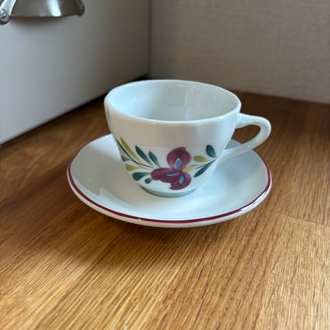 En liten produksjonsfeil i koppen. Koppen har ikke produsentmerke. Ellers god stand.