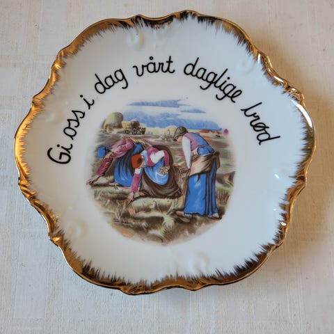 Retro tallerken til å henge på veggen, med skyttsengelen og De ti bud.