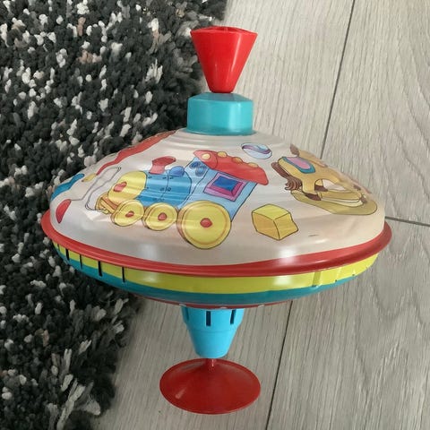 Håndlaget snurrebass i tre – ca. 5 cm selges.