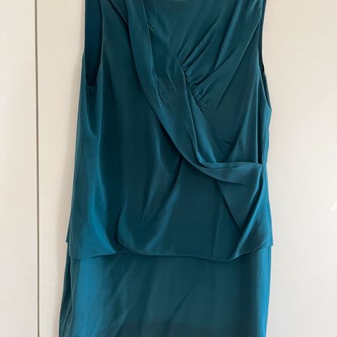 Pent brukt grønn bluse med lang dekorativ glidelås bak. Fra Oasis.