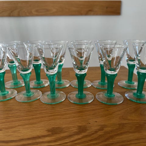 5 Grønne Likørglass- Skruf Glasbruk - Vintage!