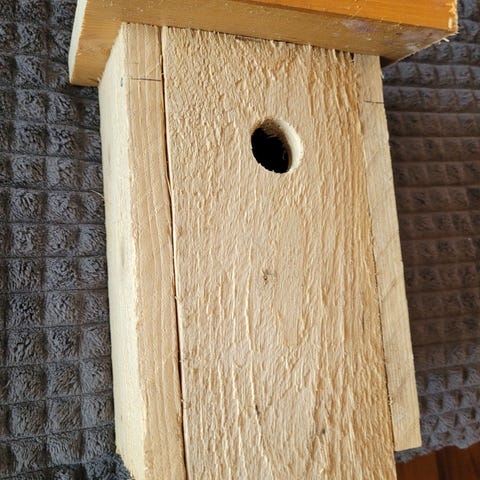 Fuglekasse lages på bestilling. Lages med avtagbart lokk uten skruer. Kassa på bildet er for kjøttmeis eller svarthvit fluesnapper. 30mm hull. Ca størrelse 30x12x16cm. Lager også på andre mål om ønskelig. Ferdig beiset med 2strøk rød kr. 150,- ubehandlet kr.90,- Sender med helt hjem.