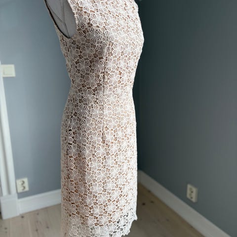 På prislappen står det str 14, men kjolen er liten i størrelse. Mer som 38-40.