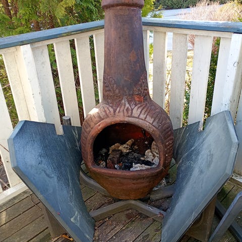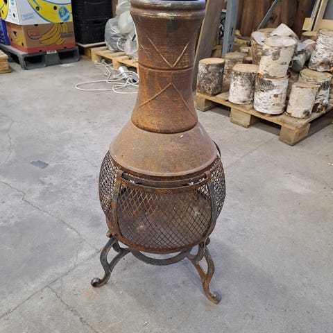 En ekte håndlaget Aztec chimenea varmer godt, skaper god stemning på uteplassen og holder mygg og knott unna. Siden vekten er lav, ca. 35 kg. kan den stå på en tre-terrasse og flyttes på uten problemer. Hvis du smører på citronellaolje holder den mygg og knott unna. Du kan også lage mat inni og oppå en chimenea.
