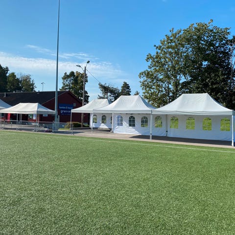 Pop-up telt fra OB Wiik til utleie. Stålramme gjør teltet stabilt, og 2 personer setter opp dette på 10 minutter. Dette er proff telt, som er stabilt i vær og vind. Følger med jordspyd til forankring. 6 stk vegger (1 med dør) kan medfølge.