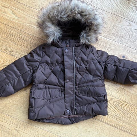 Kjempefin vinterjakke fra Wheat til baby/barn. Står str 9 M, syns den passer fra ca 9mnd opp til nesten to år, kommer an på hvor stort barnet er. Nydelig brun farge.