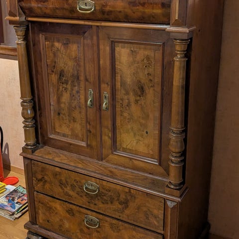 Selger et Mahogny skap som er veldig unikt.. Ble laget på mål til min bestefar til hans pokaler og trofeer!